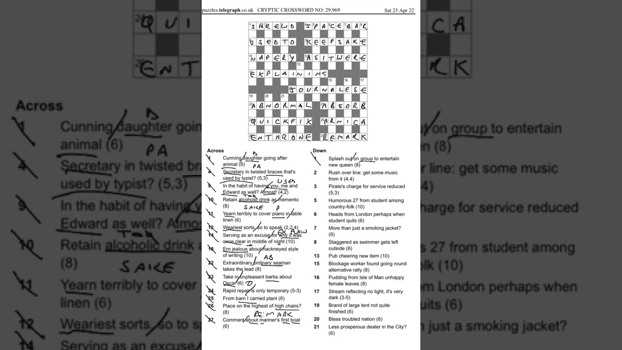 Smart, shrewd - crossword puzzle clues & answers - Dan Word Smart, shrewd. Today's crossword puzzle clue is a quick one: Smart, shrewd. We will try to find the right answer to this particular crossword clue. Here are the possible solutions for "Smart, shrewd" clue. It was last seen in British quick crossword. We have 1 possible answer in our database. Shrewd enough to be on time - crossword puzzle clues & answers - Dan Word Today's crossword puzzle clue is a cryptic one: Shrewd enough to be on time. We will try to find the right answer to this particular crossword clue. Here are the possible solutions for "Shrewd enough to be on time" clue. It was last seen in British cryptic crossword. We have 1 possible answer in our database. Sponsored Links. Shrewd, perceptive - Crossword Clue, Answer and Explanation Shrewd, perceptive (6) We are hiring a Software engineer with a focus on cryptic crossword projects! (Click to find out more) I believe the answer is: astute This clue is a double definition. 'shrewd' is the first definition. (I know that shrewd can be written as astute) 'perceptive' is the second definition. (I've seen this before) Shrewd crossword clue - WSJCrosswordSolver.com Jan 11, 2023 · Shrewd crossword clue Below you may find the answer for: Shrewd crossword clue. This clue was last seen on Wall Street Journal Crossword January 12 2023 Answers In case the clue doesn’t fit or there’s something wrong please let us know and we will get back to you.